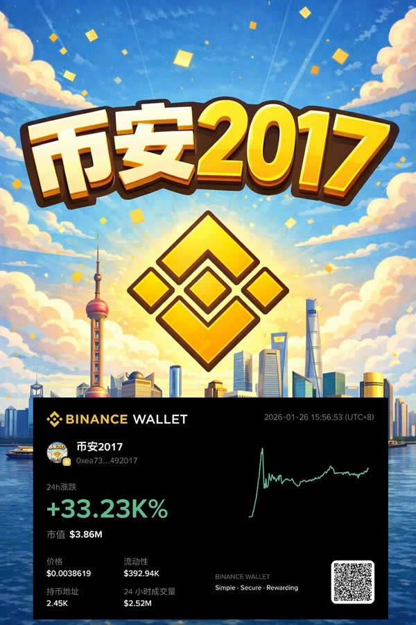 一个新创建的钱包地址在今天转入30万美元开始持续购买一个meme代币“币安2017”,目前购买仓位已幅盈50%